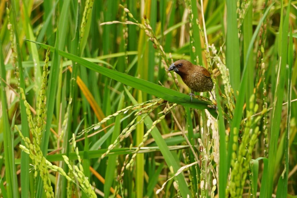 Capucin à damier dans un champ de riz