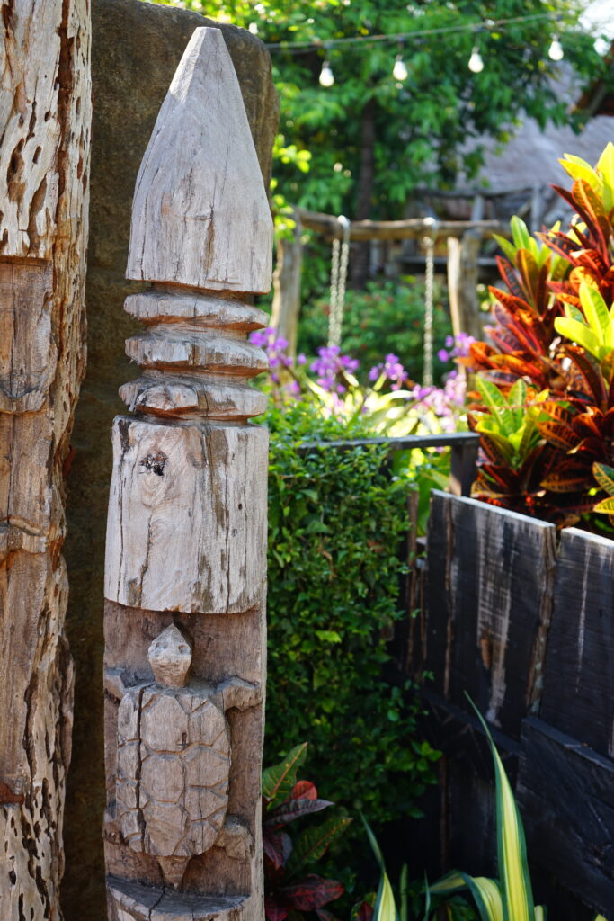 L’escalier des invités comporte des sculptures représentant la poitrine des femmes et un croissant de lune pour la fertilité.
