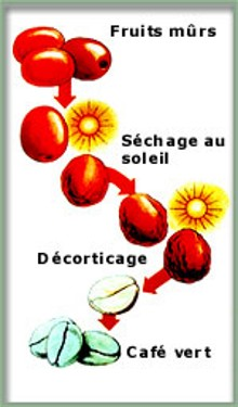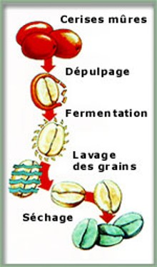 Dans la méthode sèche, le café est séché au soleil puis décortiqué. Dans la méthode humide, la café est dépulpé puis on le laisse fermenter et on le lave avant de le faire sécher au soleil ou dans des fours. La méthode Honey fait appel au dépulpage mais ensuite le séchage se fait directement au soleil.
