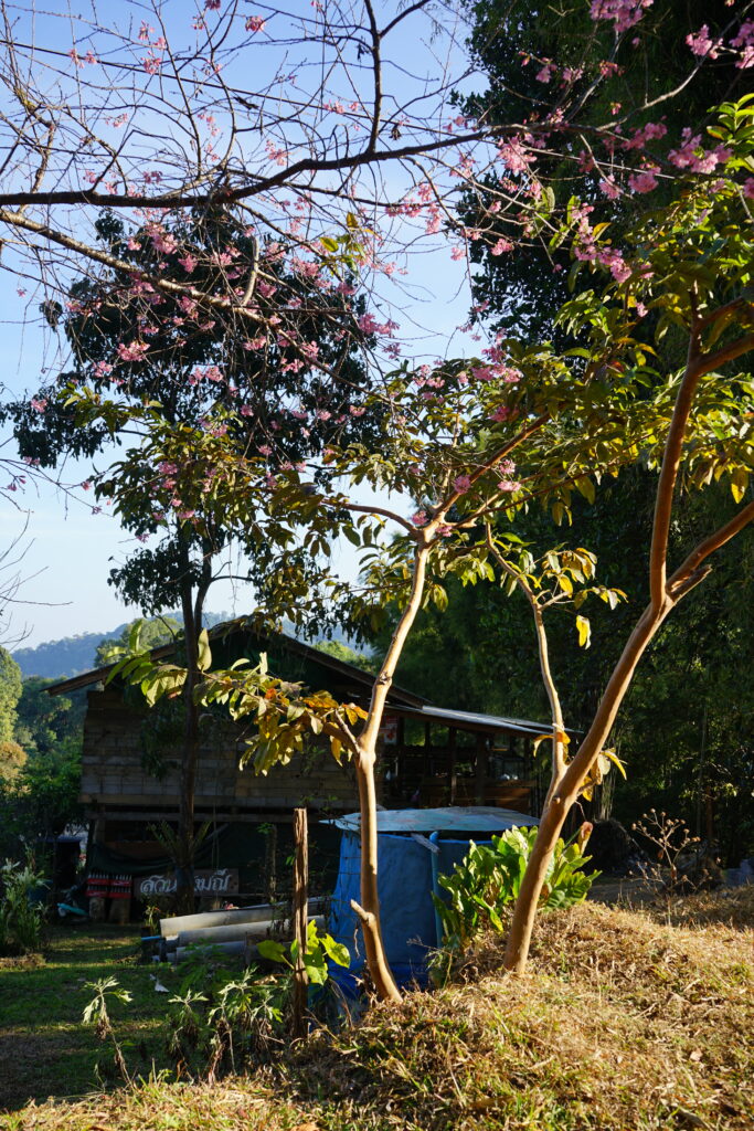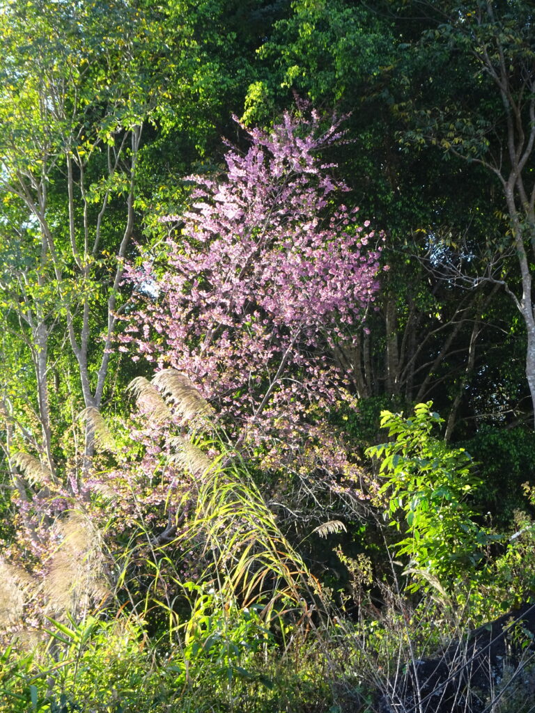 Le temple est situé en impasse au bout d’une jolie route de montagne. En plus d’admirer le paysage, nous avons eu la chance de voir des cerisiers en fleurs.