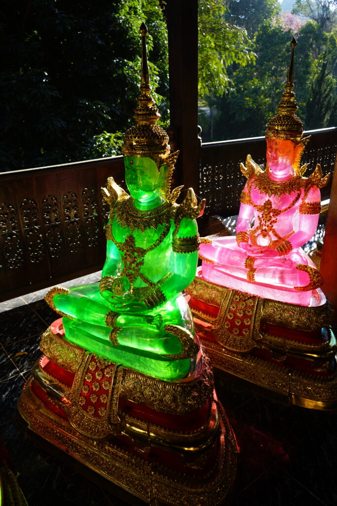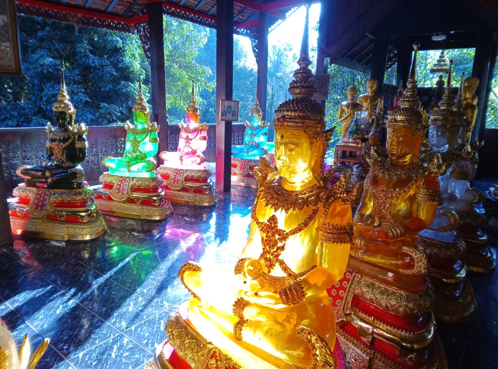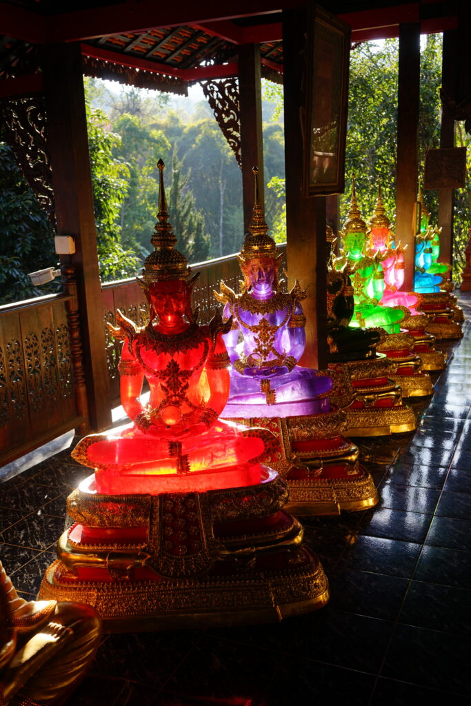 Nous sommes finalement arrivés dans un autre hall où un rayon de soleil traversait les différentes représentations multicolores de bouddas.