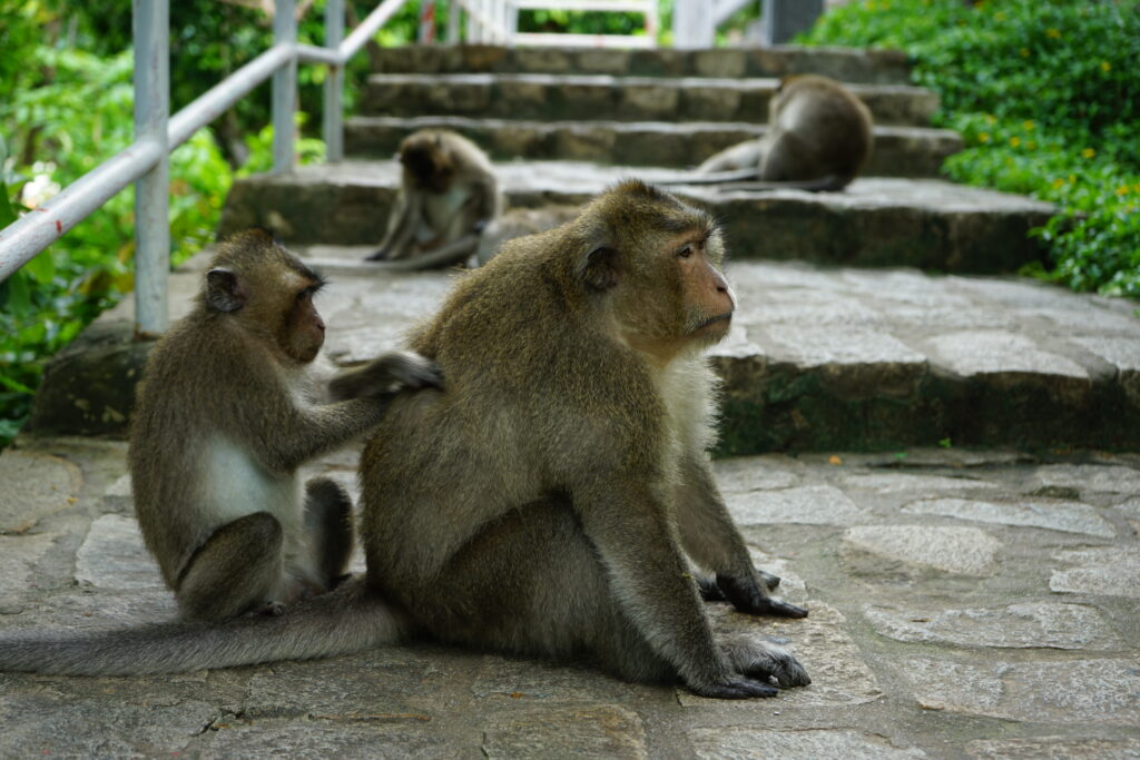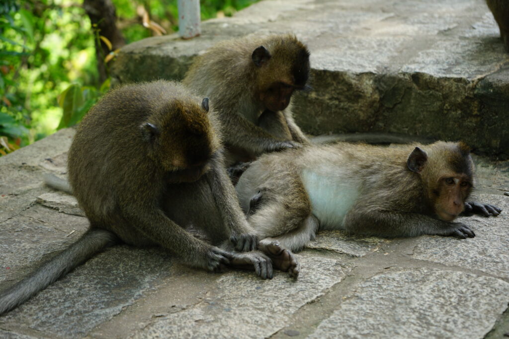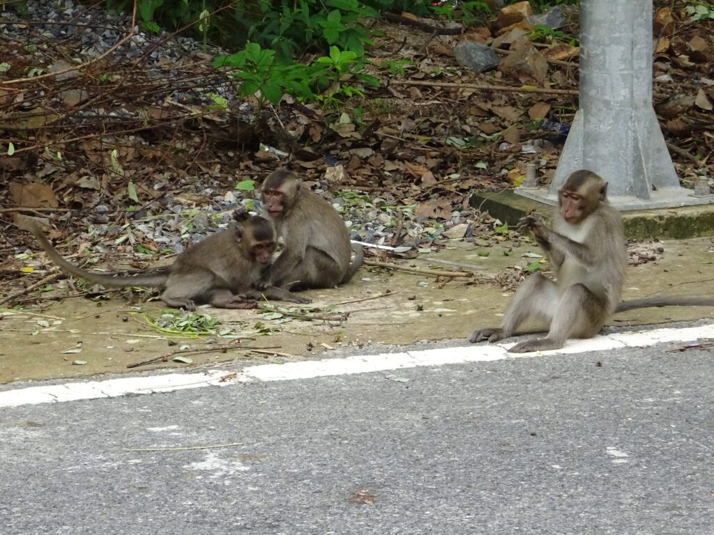 En bord de routes, de nombreux singes vaquent à leurs occupations.
