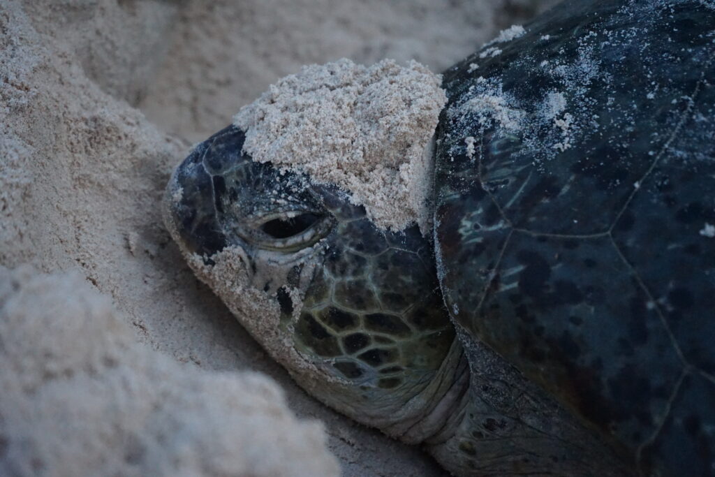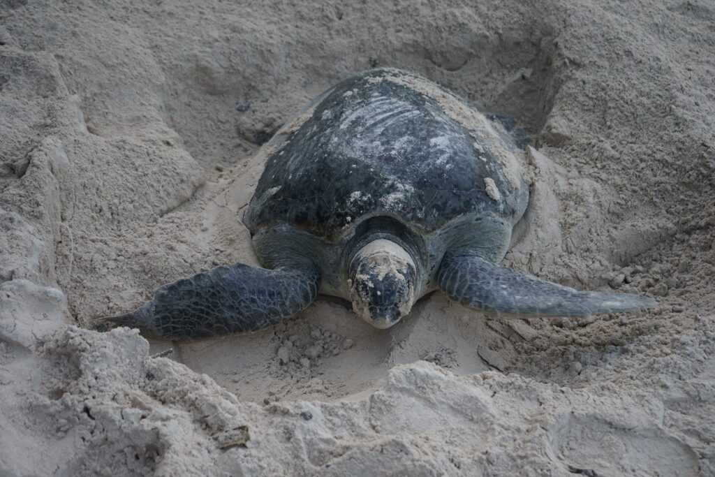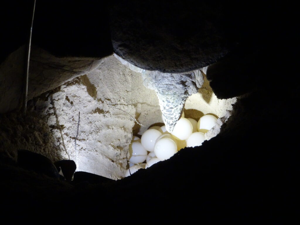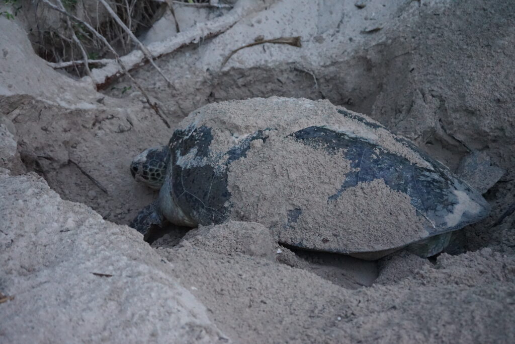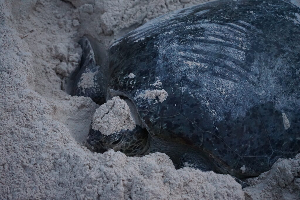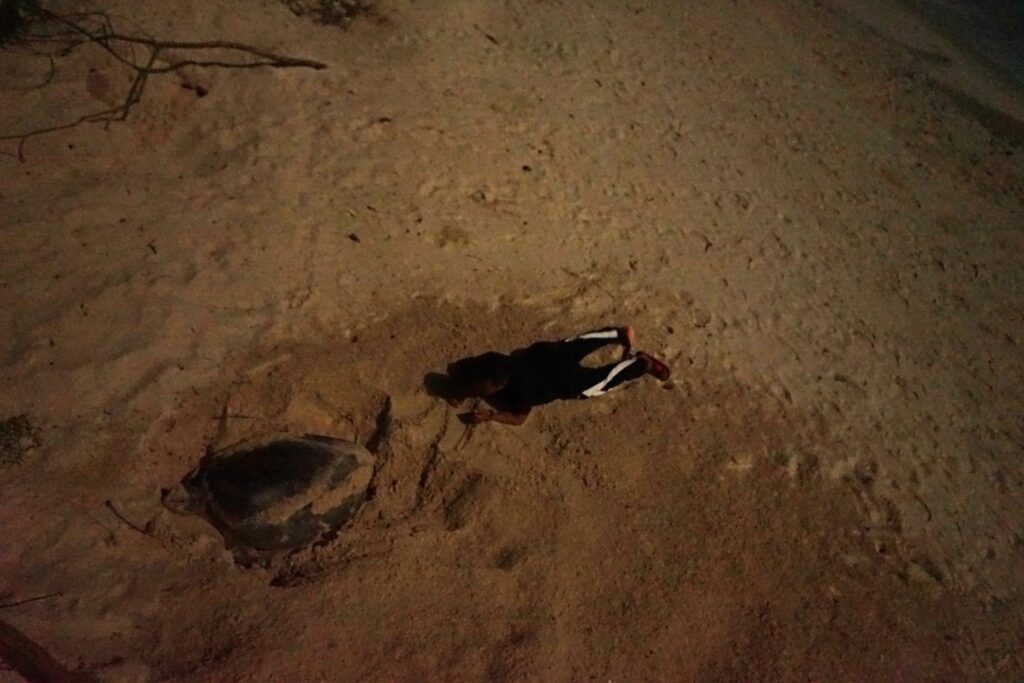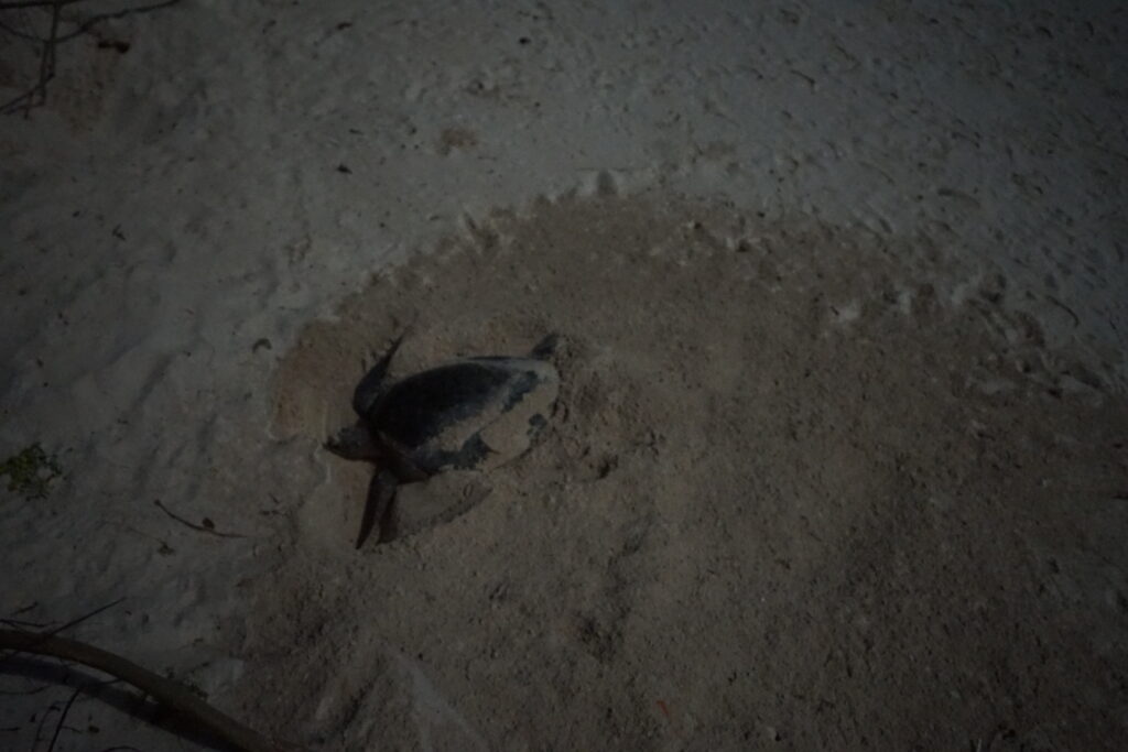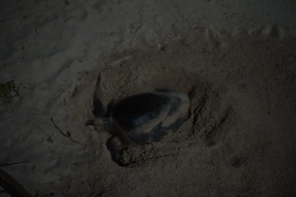 Sept tortues sont venues sur la plage durant la nuit où nous étions présents, trois d’entre elles ont creusés des nids et une seule à pondu!