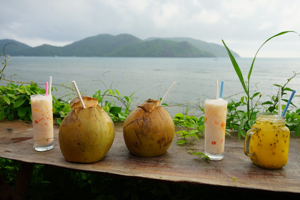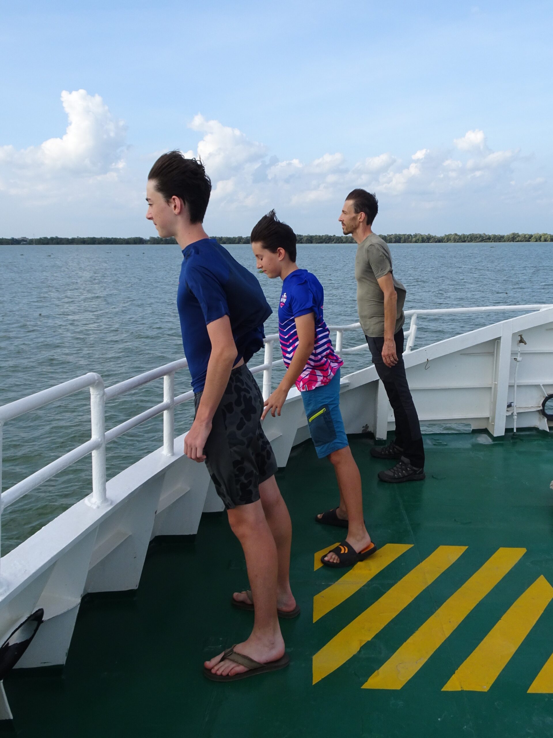 Après un dîner dans un restaurant de poisson avec du calamar séché grillé et un porridge de riz au fruit de mer, nous avons rejoint le con son island hotel.
