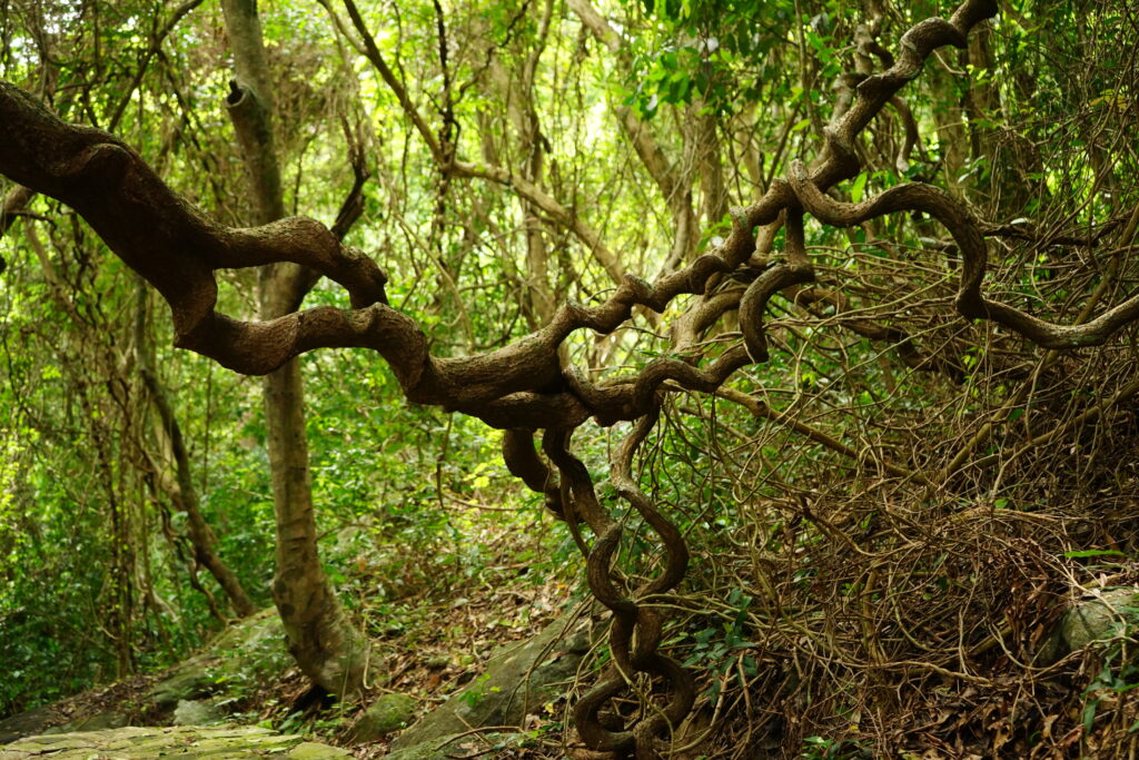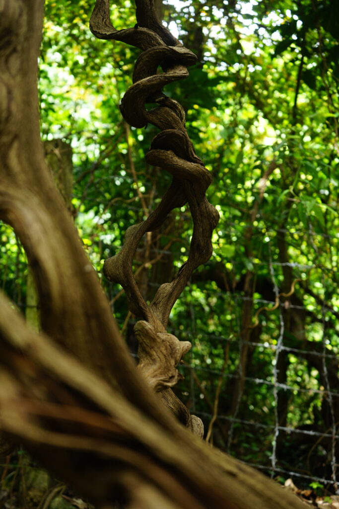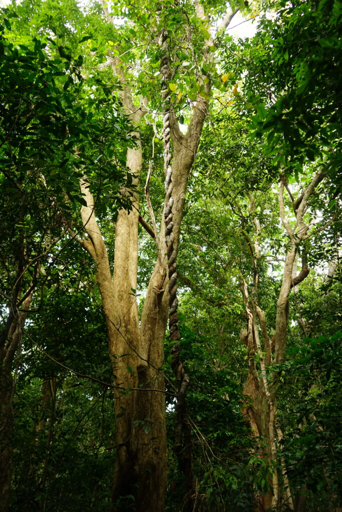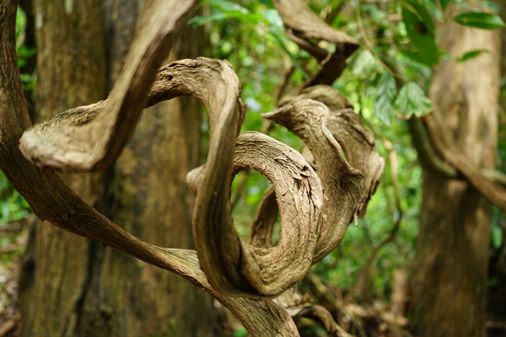 Les lianes sont fantastiques! On apprend sur un panneau informatif que la vie des lianes débute sur le sol là où elles reçoivent seulement 1 à 2 % de lumières. Mais au lieu de construire leur propre structure, elles s’enroulent en montant autour des arbres. Cette méthode est tellement efficace qu’elles finissent parfois par avoir plus de lumière que leurs arbres hôtes.