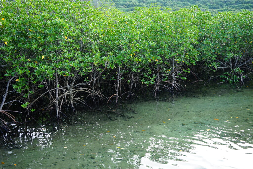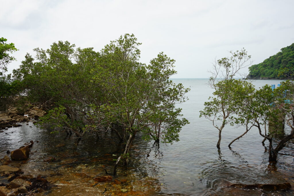 Nous arrivons ensuite sur l’île à proprement parlé. Le ponton est entouré de mangroves.