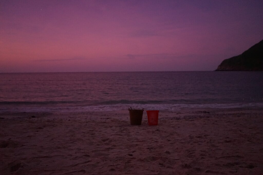 Marée haute à 6:08, notre guide nous a réveillé vers 4 heures. Plusieurs tortues étaient sur la plage. Une tortue était sur la plage et avait commencé à creuser des nids. Les tortues vont creuser plusieurs nids avant de pondre éventuellement. Le guide nous a dit qu’il y avait plusieurs nids soit parce que l’emplacement n’était pas bon, trop rocailleux par exemple, mais aussi pour induire en erreur les prédateurs. Les nids des tortues vertes peuvent faire environ 60 cm de profondeur.