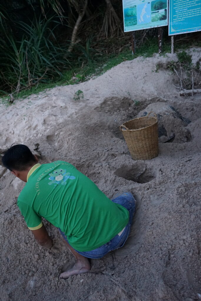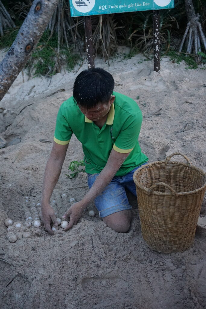 Un centre de protection des tortues y est installé. Quand les tortues viennent pondre des oeufs, ceux-ci sont collectés et remis dans une zone protégée des prédateurs jusqu’à l’éclosion. Deux variétés de tortues viennent pondre sur l’île : la tortue verte et la tortue à écailles. 80% des pontes au Vietnam se font dans l’archipel de Con Dao.