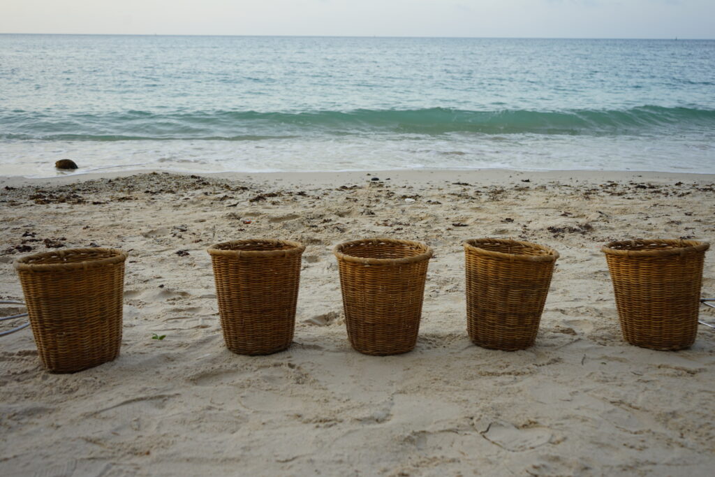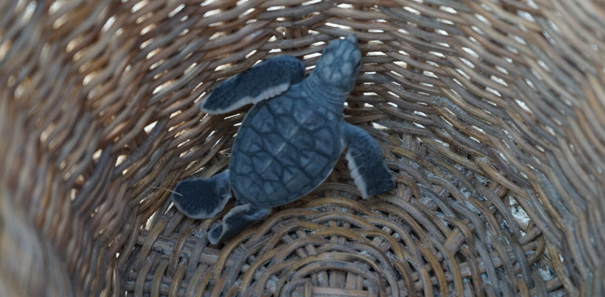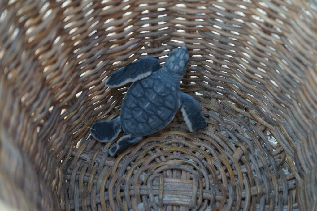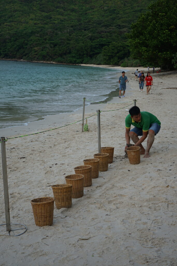 Tous les matins, les gardes du parc relâchent les bébés tortues qui ont éclos. De l’instant de leur sortie de l’œuf jusqu’au moment où ils sont relâchés, les bébés sont conservés dans des paniers pour éviter qu’ils ne se fatiguent en cherchant leur chemin.