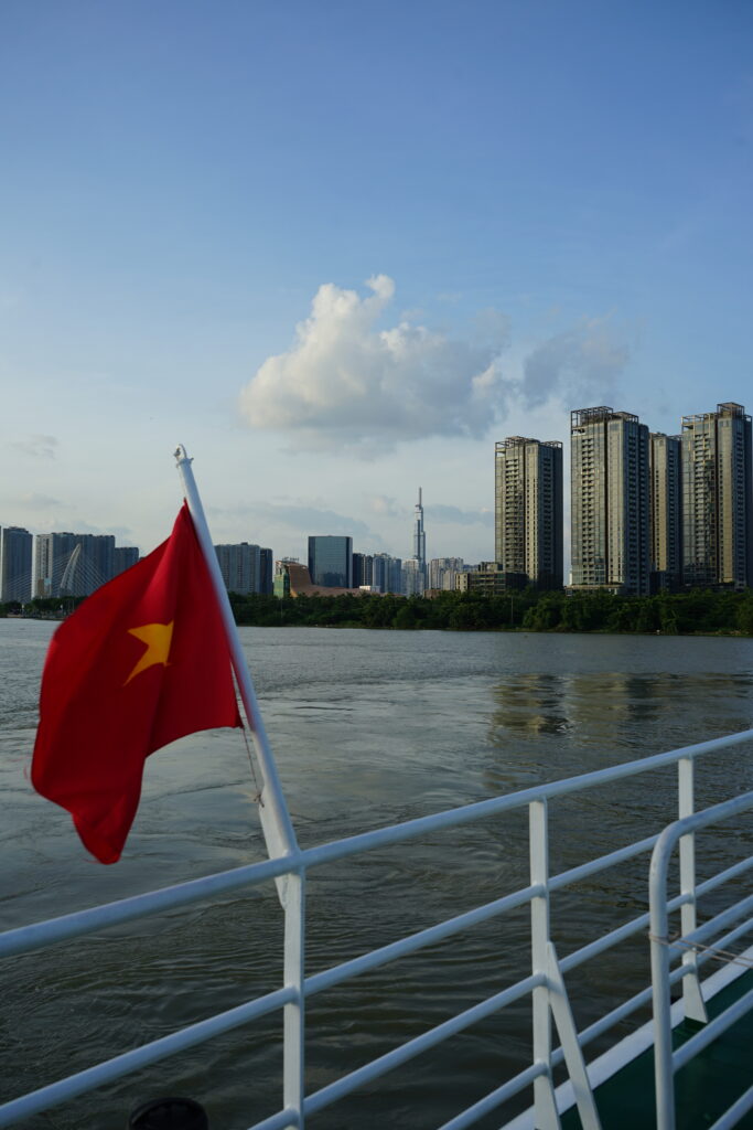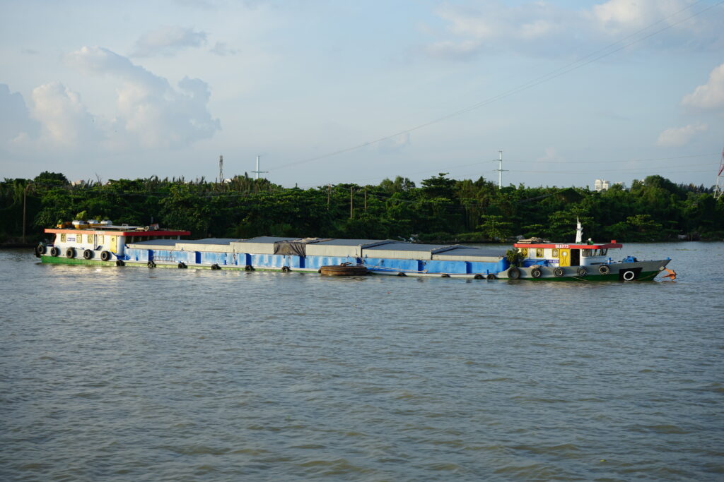 Un dernier petit tour au marché puis il est déjà l’heure du retour, cette fois ci en bateau direct jusqu’à Saigon : 5 heures de voyage dont une grande partie en rivière.