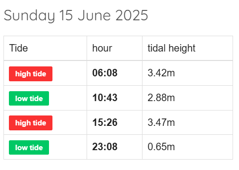 C’est l’occasion pour nous de constater à nouveau que les marées sont très différentes de celles que nous connaissons en France. En France, les marées sont dites semi-diurnes : on observe chaque jour deux pleines et deux basses mers ayant sensiblement la même hauteur. Ici, les marées sont semi-diurnes à inégalités diurnes : on observe chaque jour deux pleines et deux basses mers mais avec des différences importantes entre les hauteurs des pleines et des basses mers d’une même journée