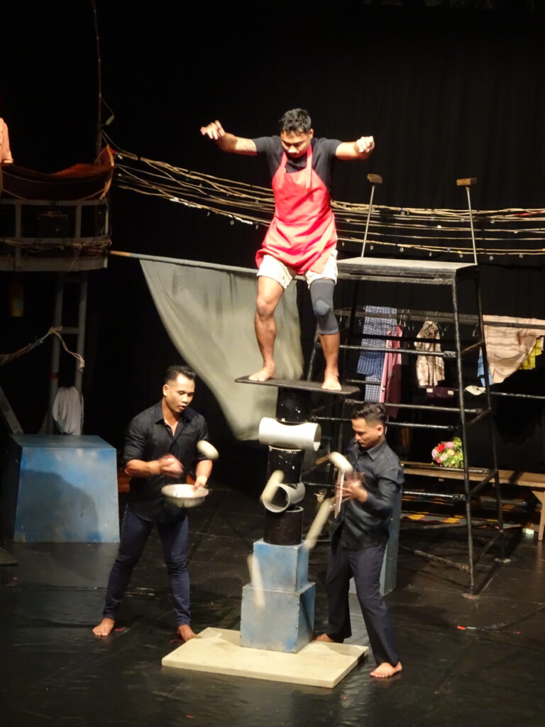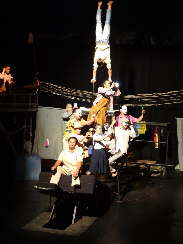 C’est aussi pour soutenir une association que nous sommes allés voir le spectacle de cirque. Nous n’avons pas été déçus. Le spectacle est de qualité. « Same Same But Different » met l’accent sur les différences entre Cambodgiens et les visiteurs étrangers, représentés avec un masque blanc dans le spectacle. On a bien ri…y compris de nous même en temps que touristes, de nos difficultés de communication et des situations parfois cocasses qui en découlent.