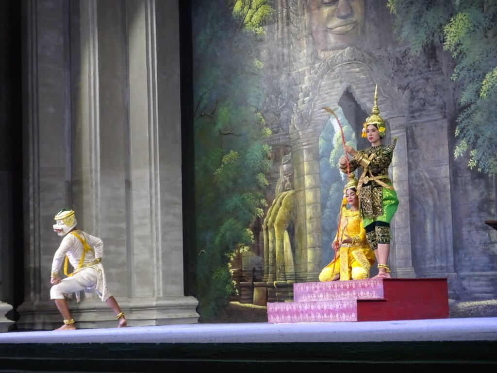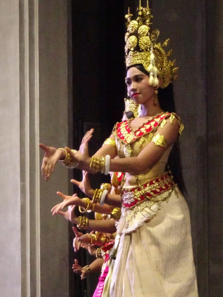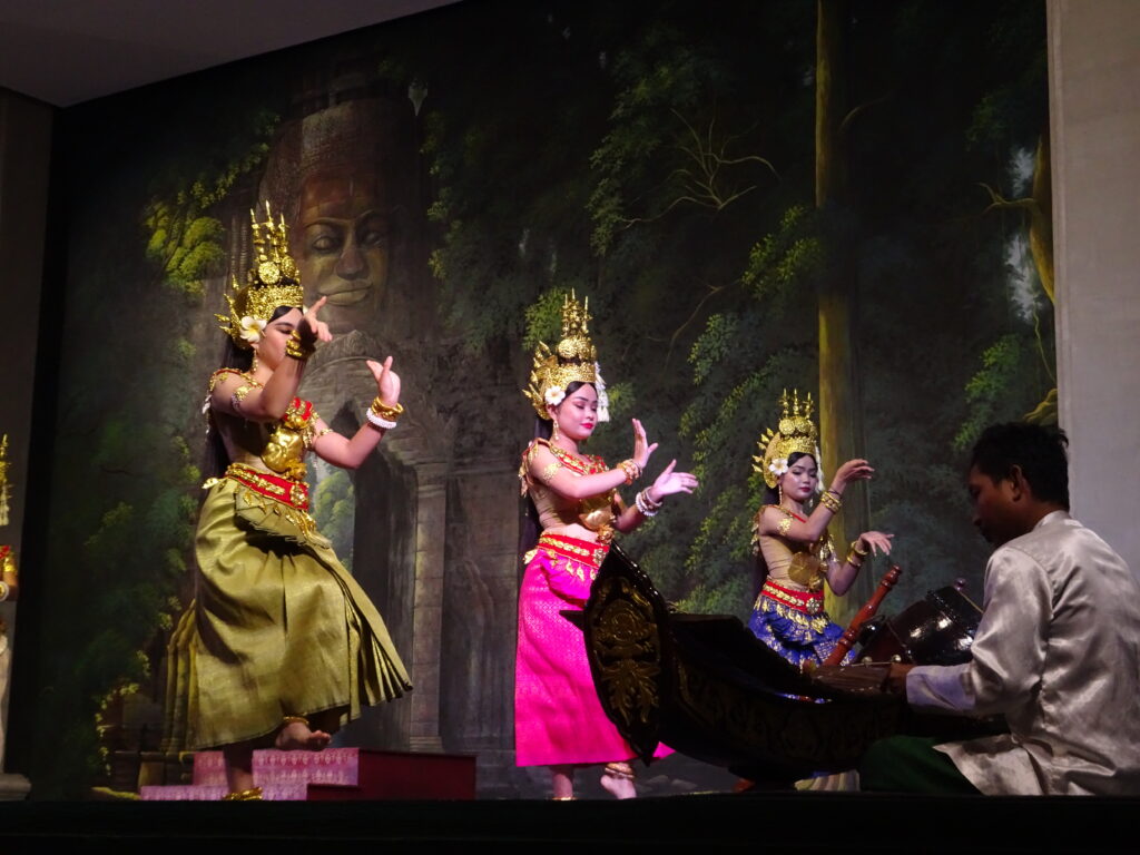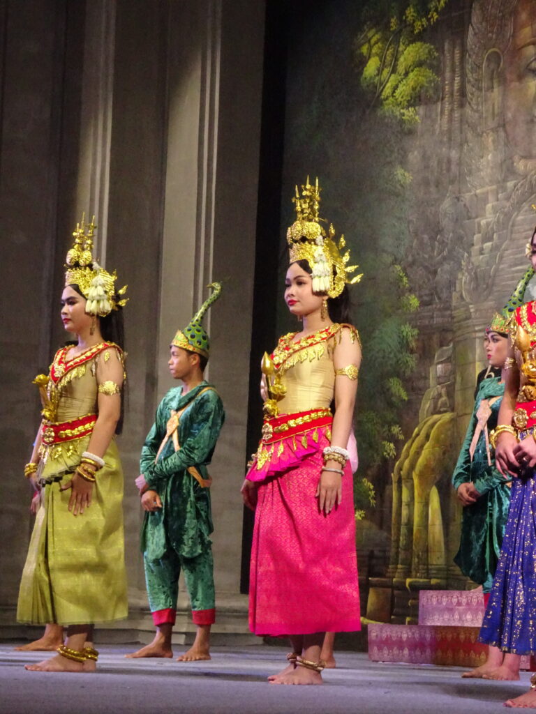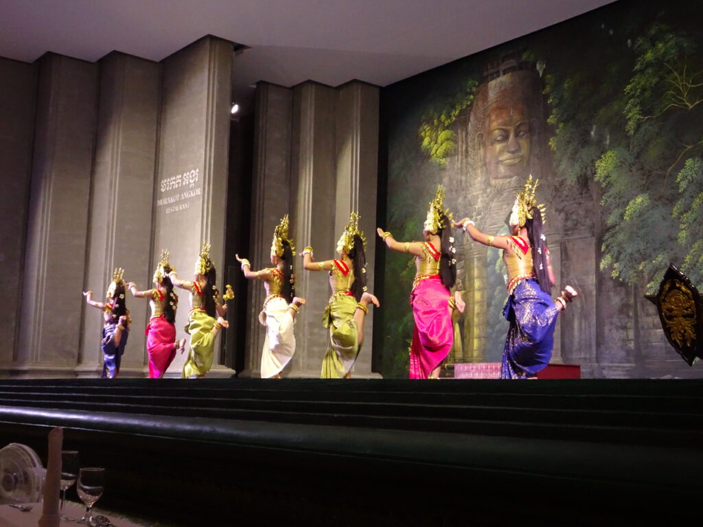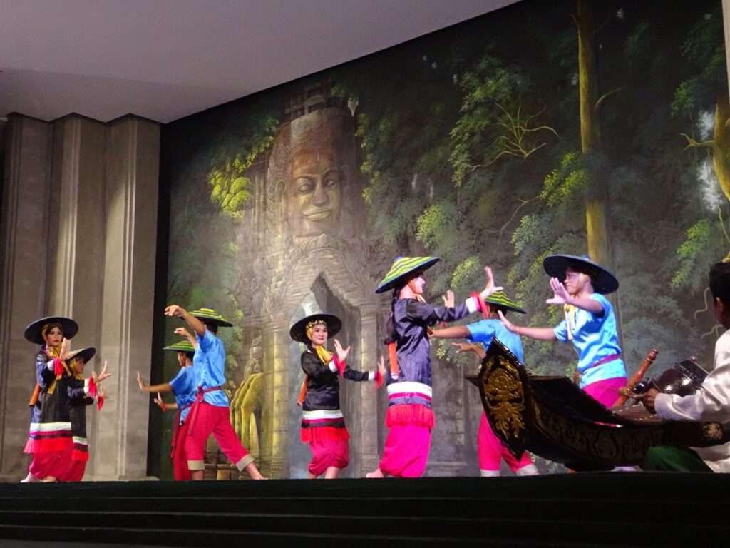 Nous sommes allés voir un spectacle de danse khmer comportant plusieurs danses traditionnelles en particulier des danses Apsara.