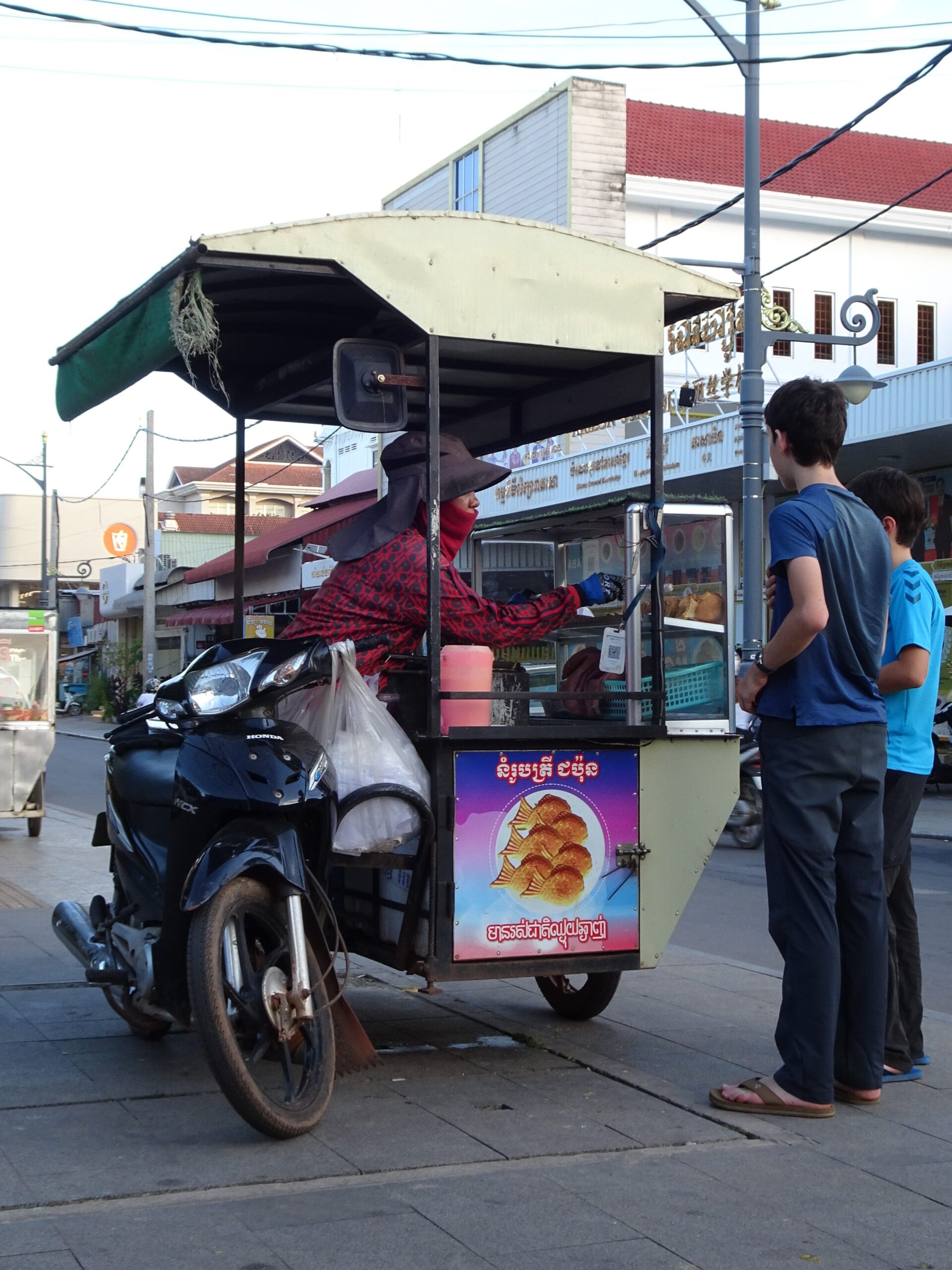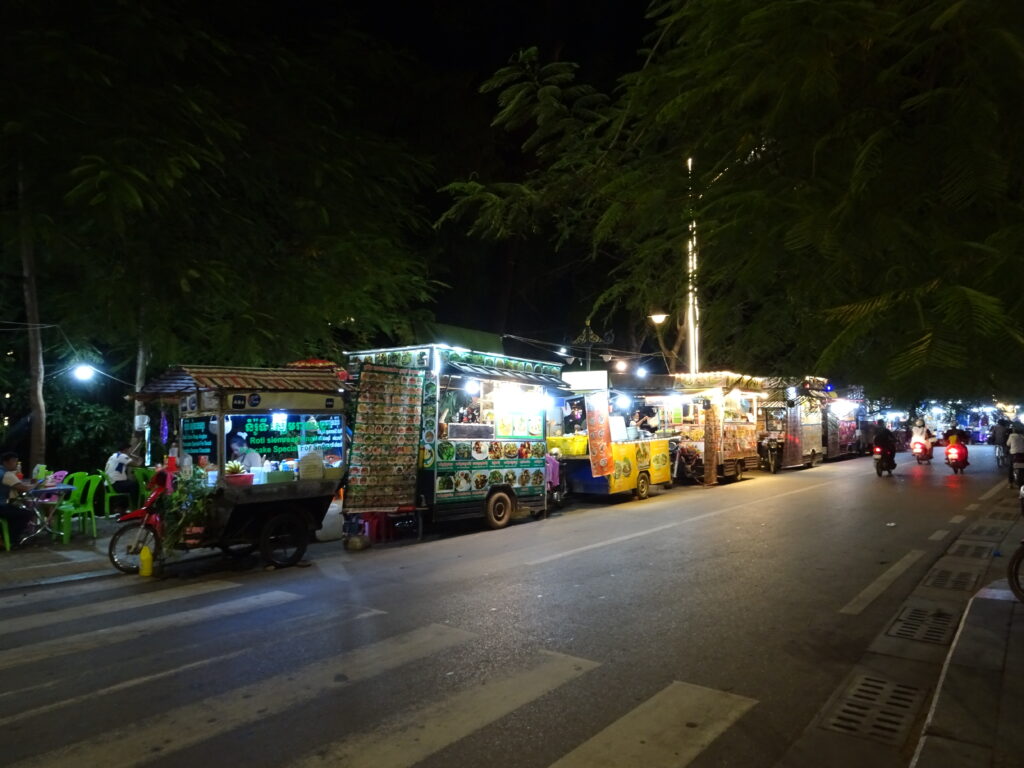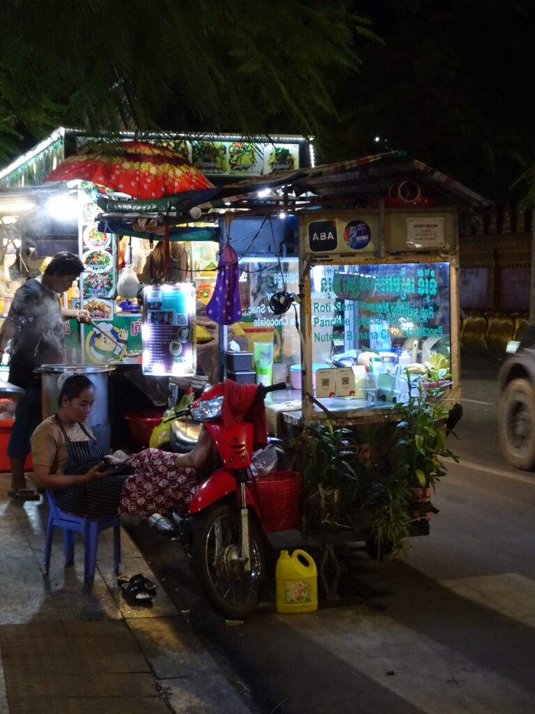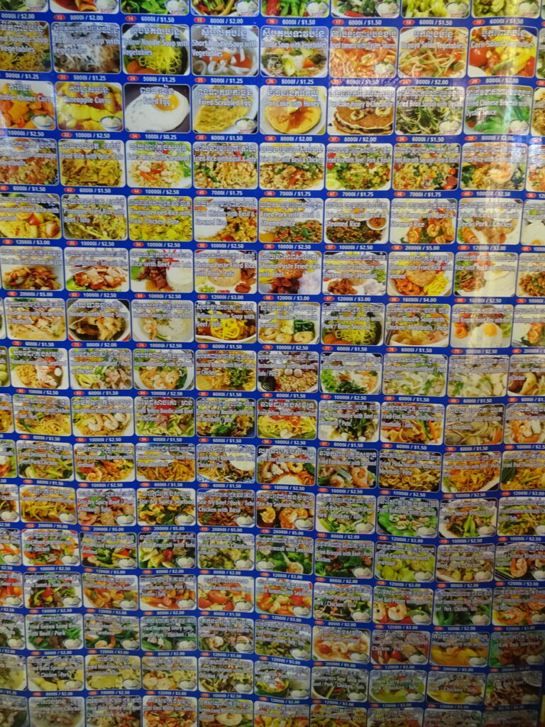 Pour la nourriture, plus d’épices dans certains plats comme l’amok de poisson et beaucoup de préparation avec une pâte de poisson fermentée le prahok…il est d’ailleurs précisé quand on réserve un bus qu’il est interdit de voyager avec du prahok (pour cause d’odeur très forte)! Nous nous sommes régalés.