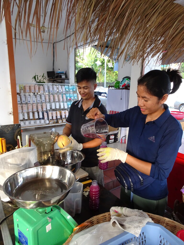 Découvrir un pays passe aussi par la nourriture et la boisson. Pour la boisson, on trouve beaucoup de jus de fruits et de smoothie comme au Vietnam : nous avons testé le jus de grenade frais…merveilleux!