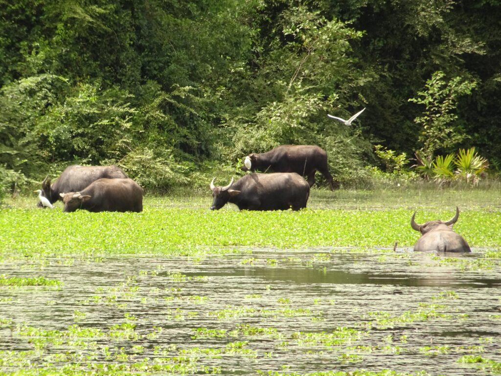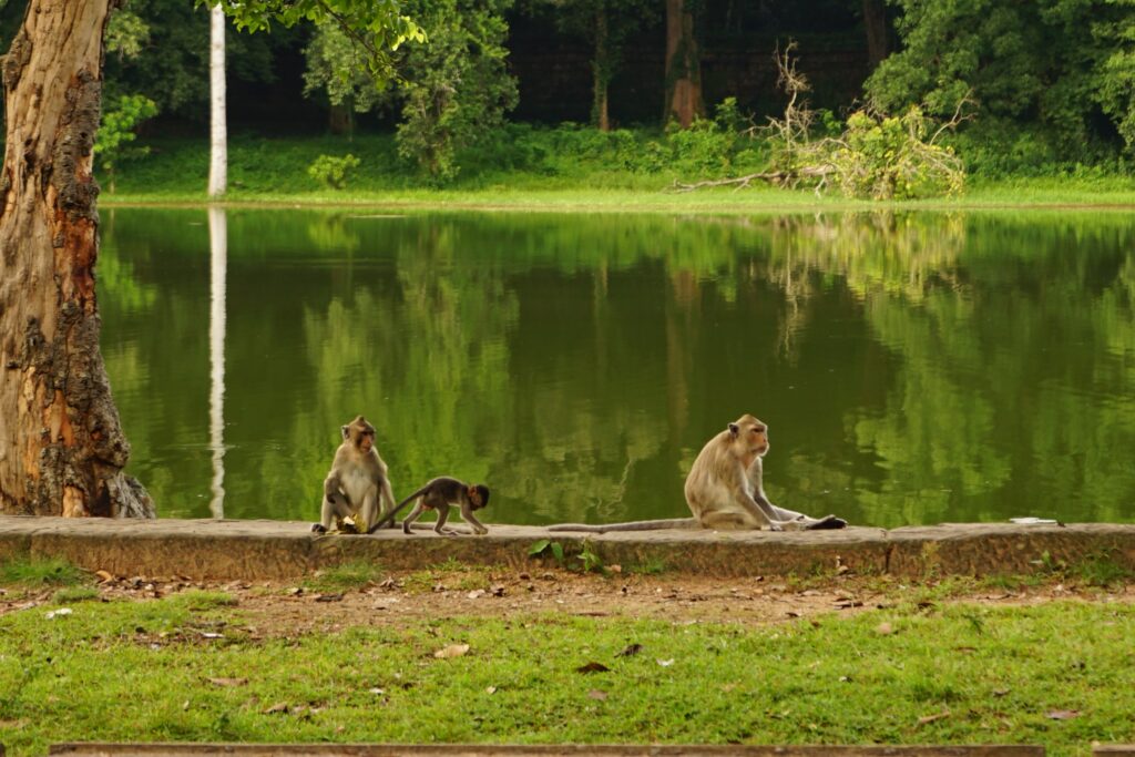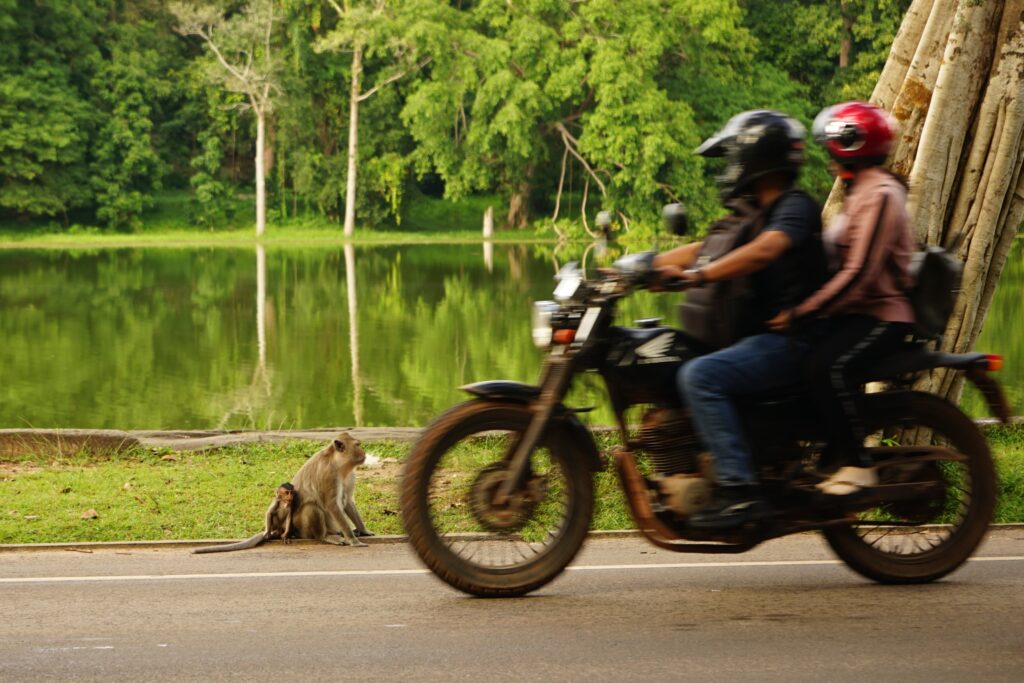 Ces balades en vélo nous ont aussi permis de découvrir la campagne environnante (forêt et rizière) et ses animaux (singes, vache et buffle d’eau).