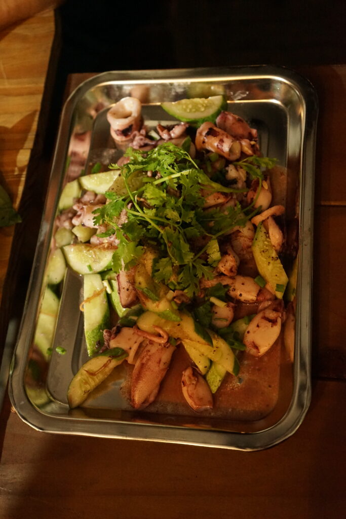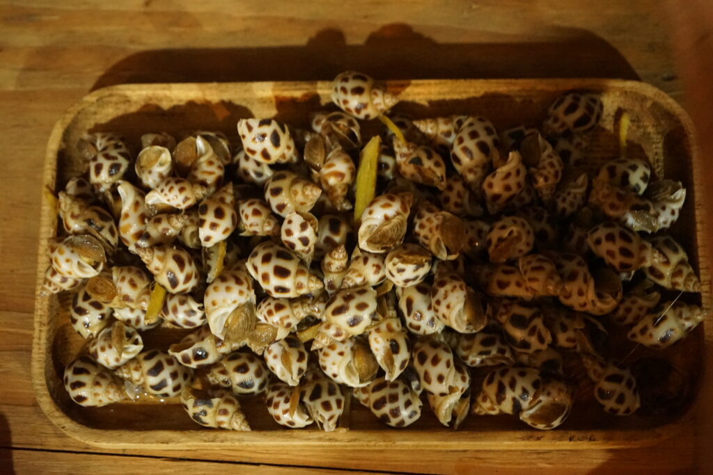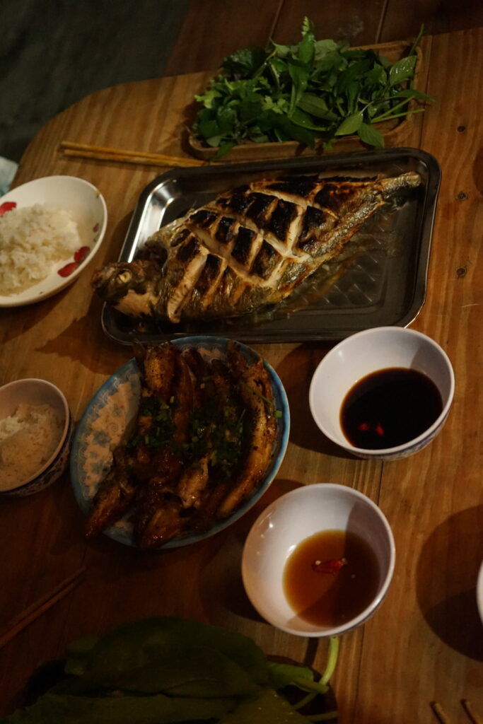 Il nous a préparé un somptueux dîner de poissons, calamars et aussi de coquillages appelés ốc ici.