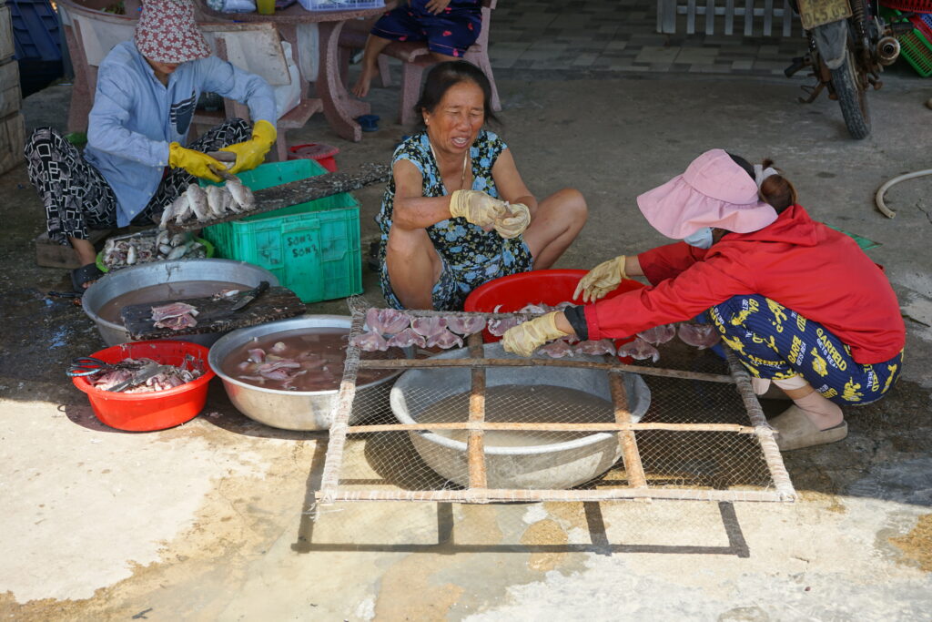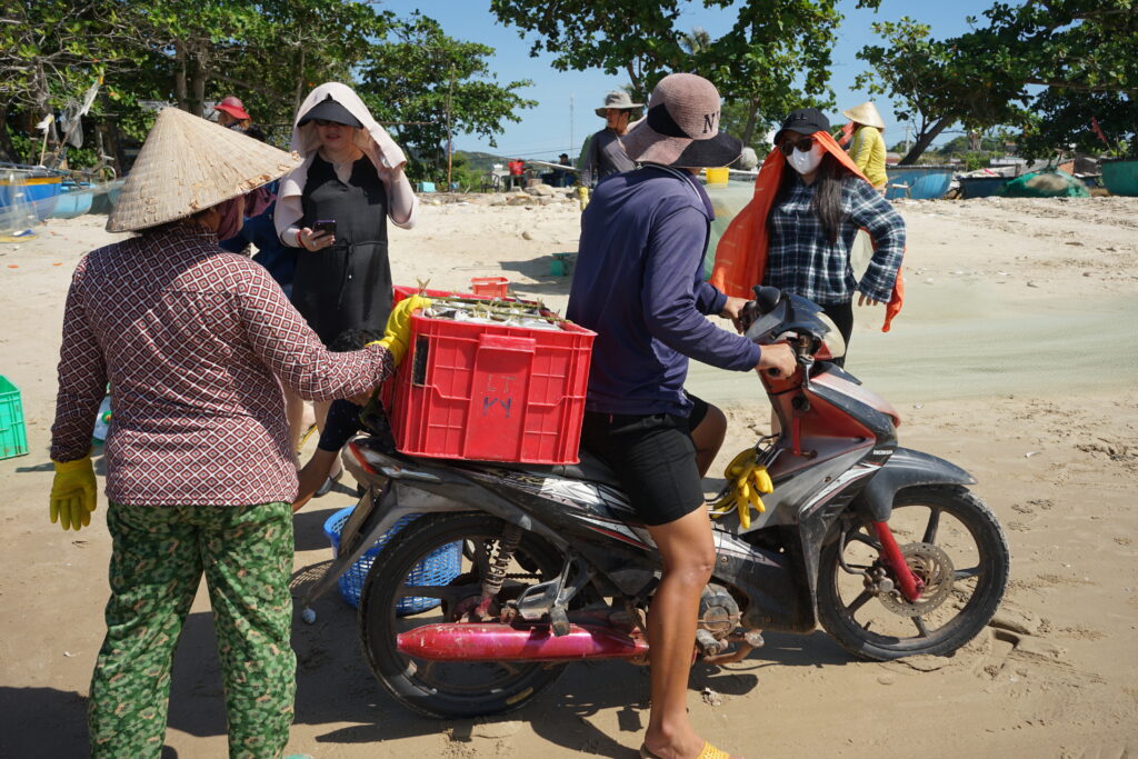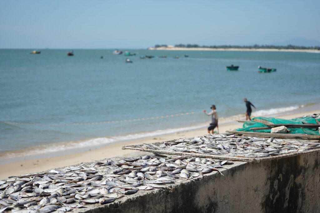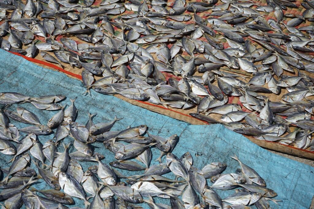 Les poissons sont vendus directement sur la plage. Certains sont mis à sécher au soleil.