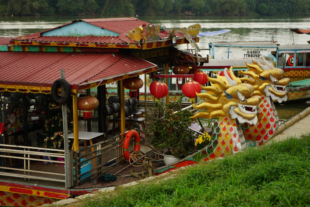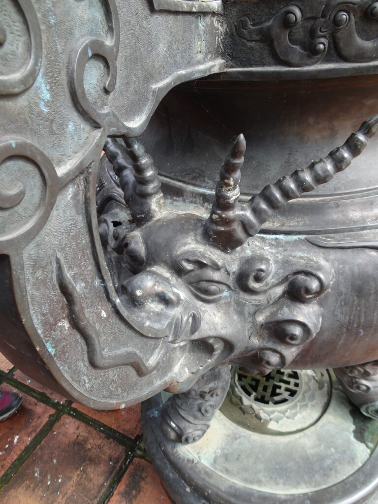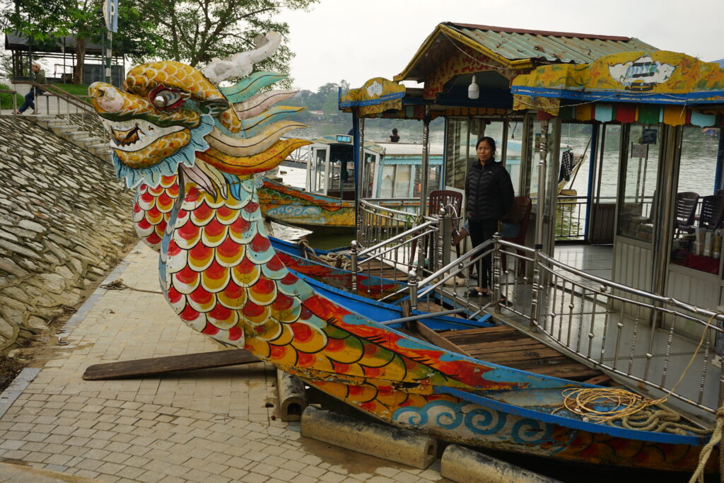 Nous avons commencer par prendre un bateau dragon sur la rivière des parfums. Le nom de la rivière est due à l’odeur des plantes médicinales qui poussent sur ses rives. nous n’étions pas à la bonne saison pour nous en rendre compte. Le bateau nous a déposé à la pagode de la Dame Céleste.