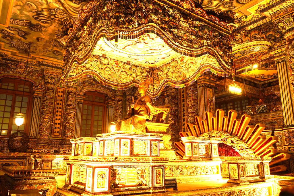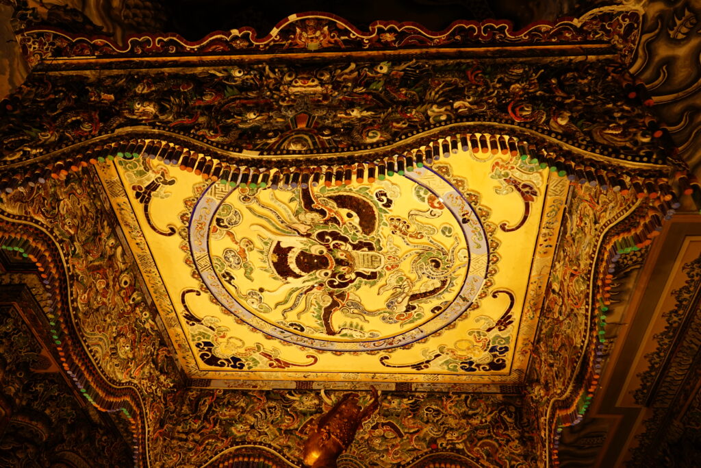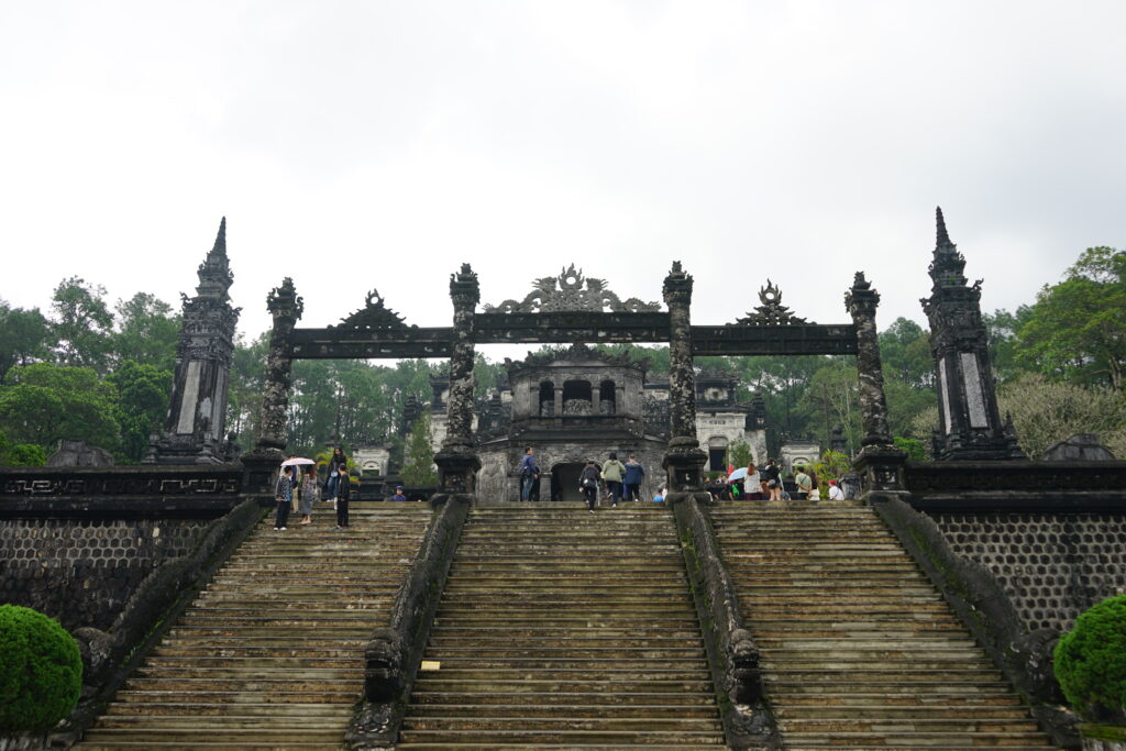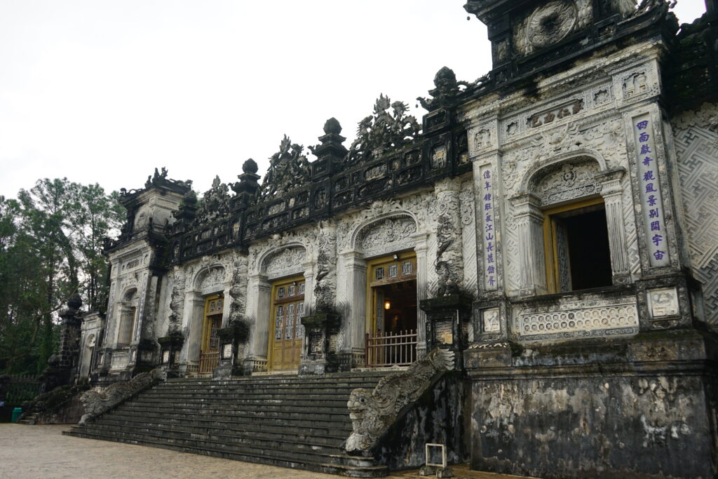 Nous nous sommes ensuite dirigés vers le tombeau de Khai Dinh qui fut le dernier construit et qui mélange les influences occidentale et vietnamienne.