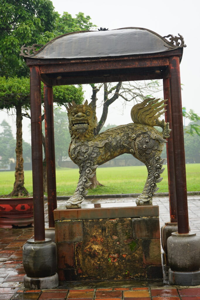 La licorne fait partie des animaux sacrés au Vietnam avec le dragon, le phœnix et la tortue. Elle ne ressemble pas du tout à l’image de la licorne qu’on a en occident. C’est un corps de lion avec une tête de dragon.