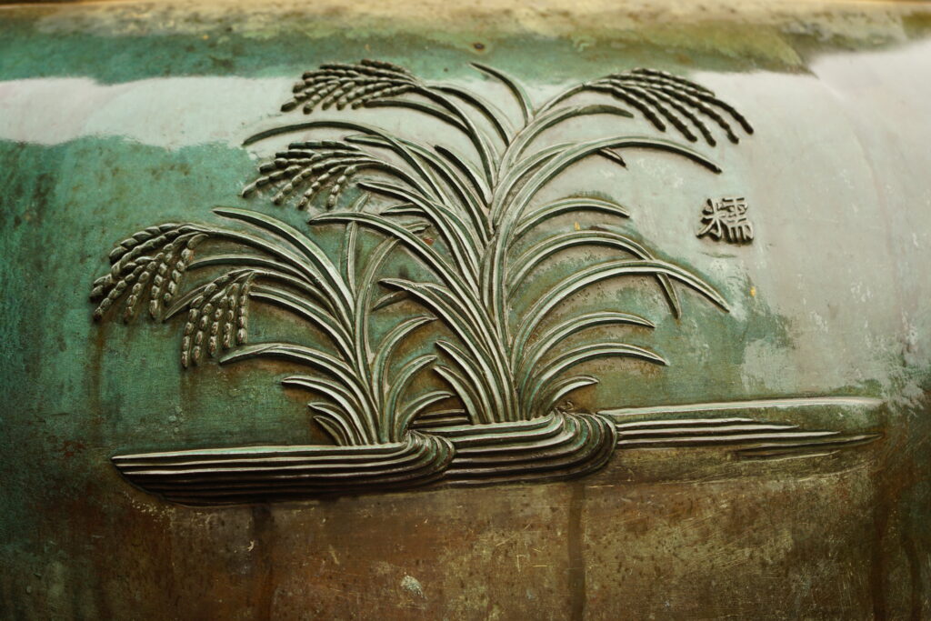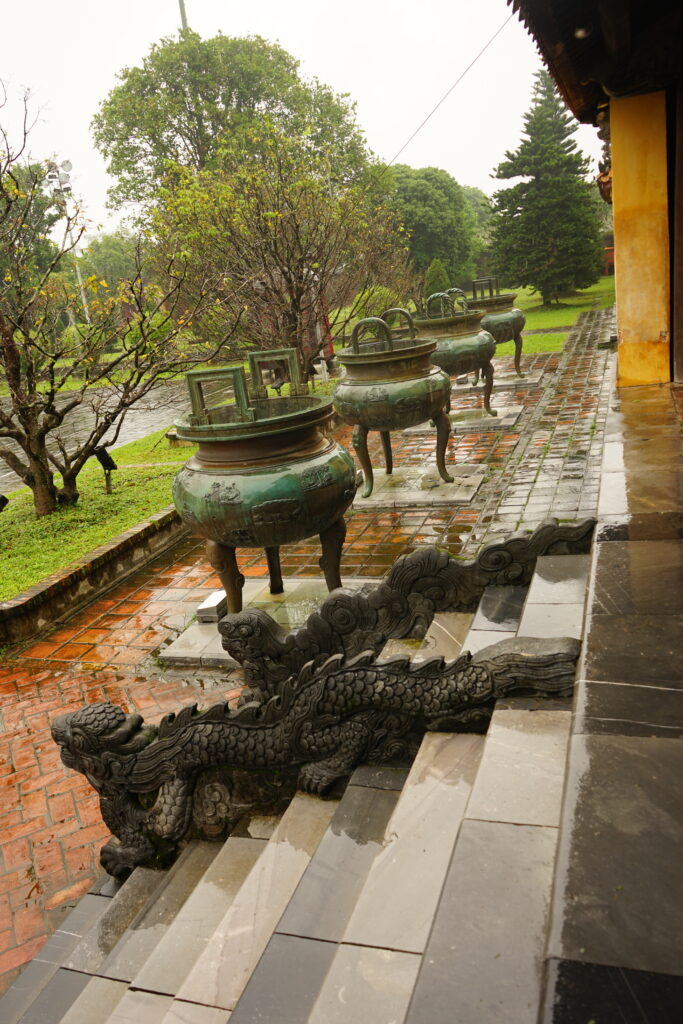 Les 9 urnes dynastiques sont ornées de motifs traditionnels vietnamiens.